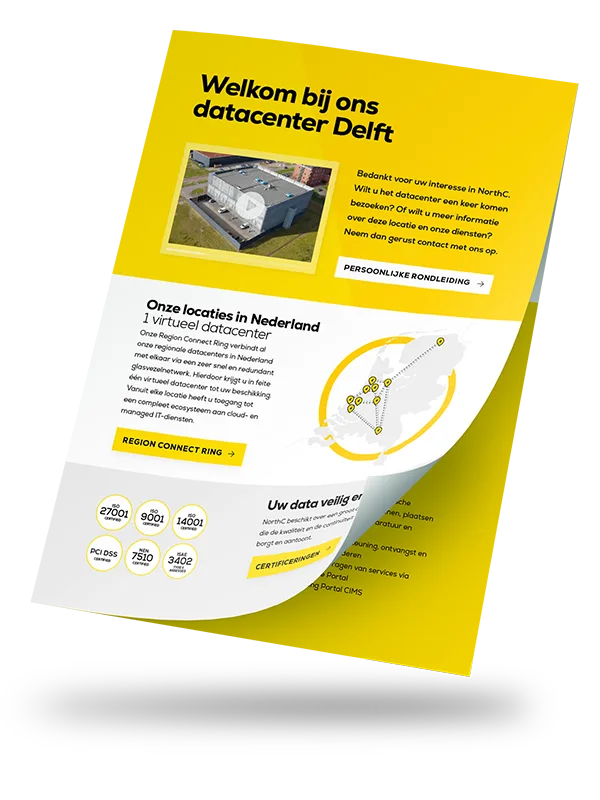 Ons datacenter in Delft bevindt zich op de TU Delft campus, een belangrijk knooppunt voor innovatie en technologie. Dankzij de directe aansluiting op de A13 en N470 is het eenvoudig te bereiken, met voldoende parkeergelegenheid op de campus. Ook met het openbaar vervoer bent u zo ter plaatse, met station Delft Campus op loopafstand en diverse busverbindingen naar de campus. Deze locatie is ideaal voor bedrijven in de metropoolregio Rotterdam-Den Haag die op zoek zijn naar uitstekende connectiviteit en bereikbaarheid.