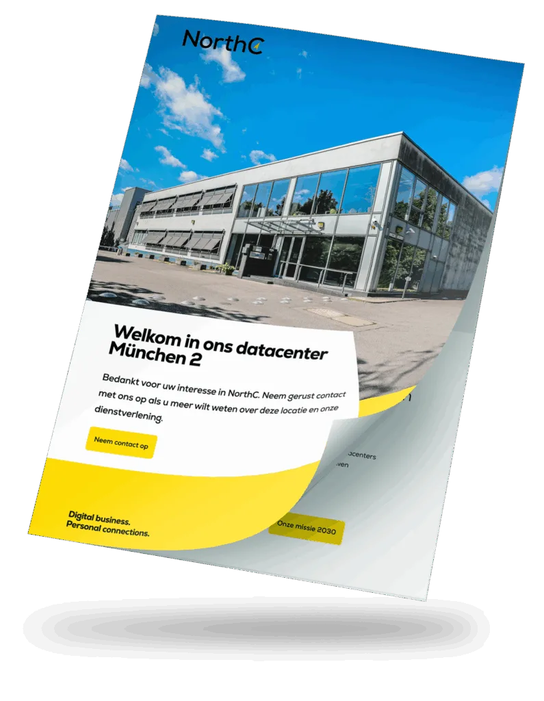 Gelegen in het oosten van München, vlakbij de beurs van München en de A94, biedt de locatie een optimale verbinding met het regionale verkeersnetwerk. De luchthaven van München en de Mittlere Ring zijn goed bereikbaar. Het datacenter is carrier-neutraal aangesloten en gekoppeld aan andere NorthC-locaties in Duitsland, ideaal voor hoog beschikbare en geografisch verspreide IT-infrastructuren.